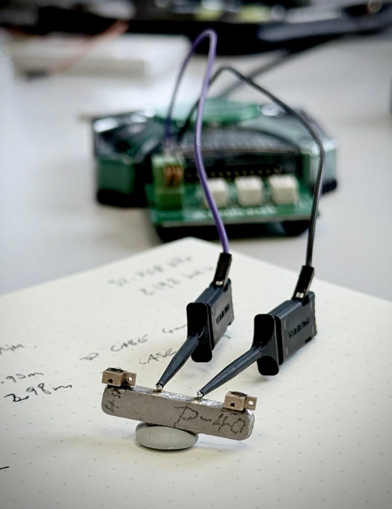 The resonance of the quartz bar at the intended frequency of around 8192Hz when triggered, proves that the quartz bar is still securely suspended and that the quartz module is still correctly working after almost 60 years.