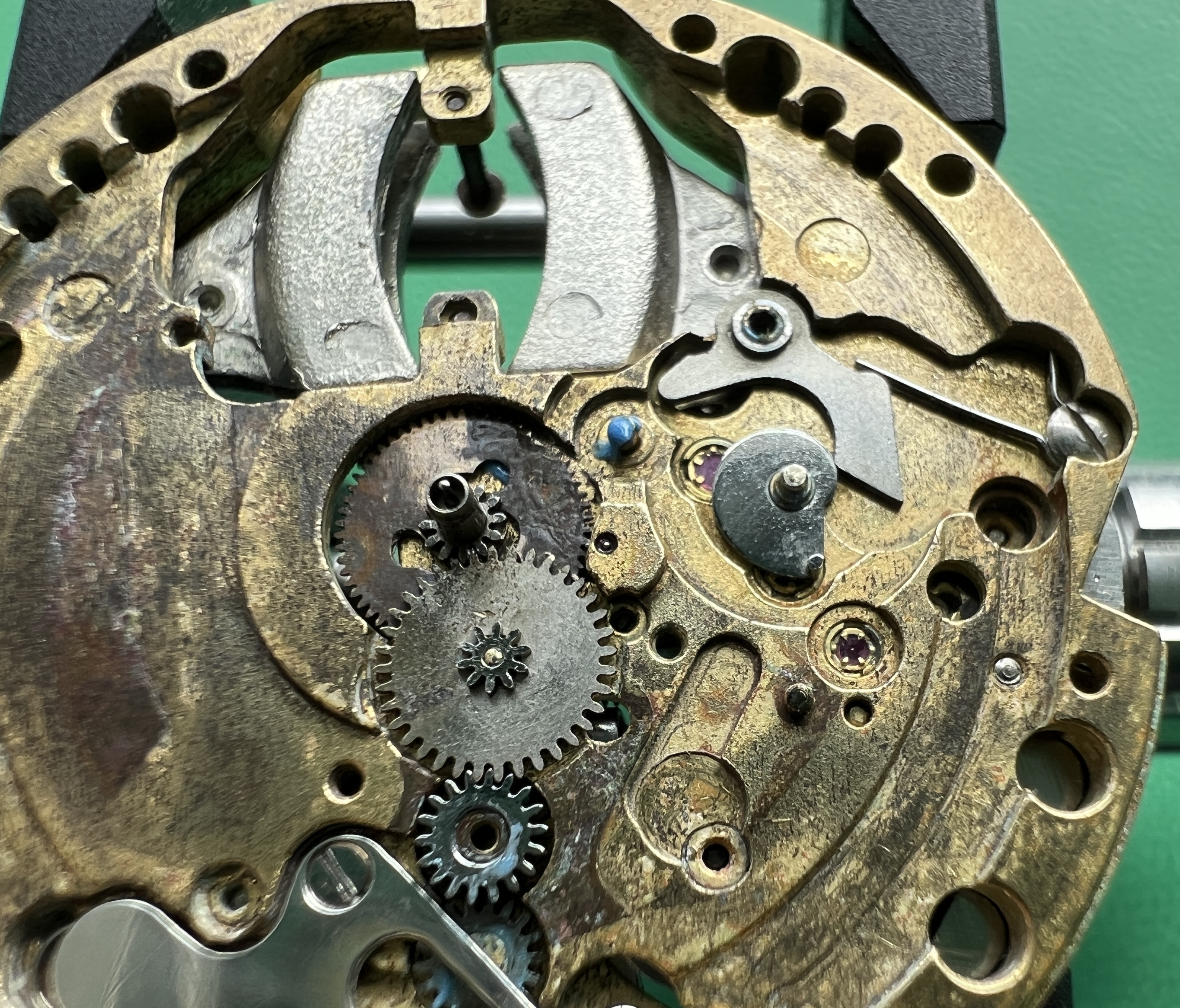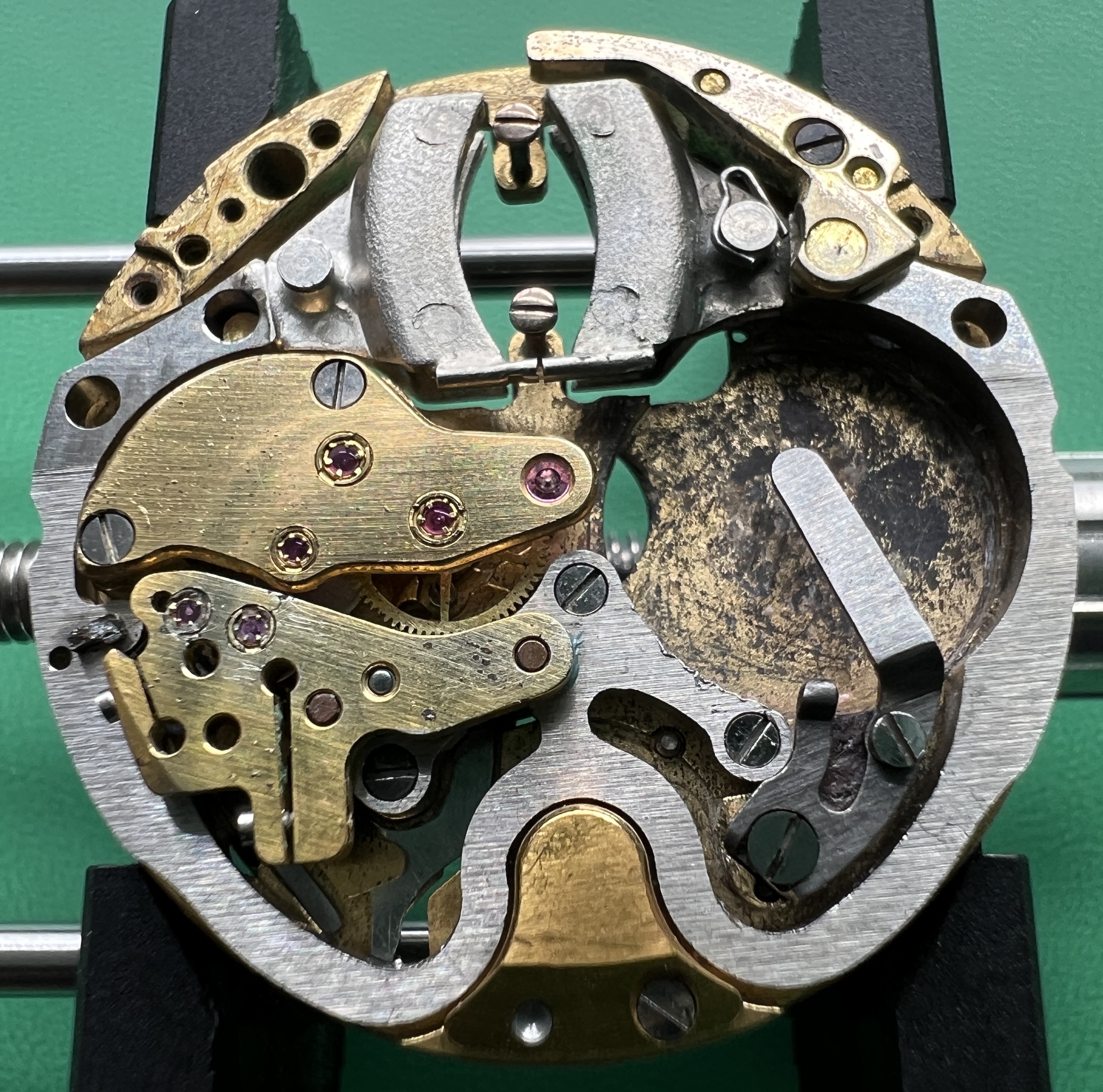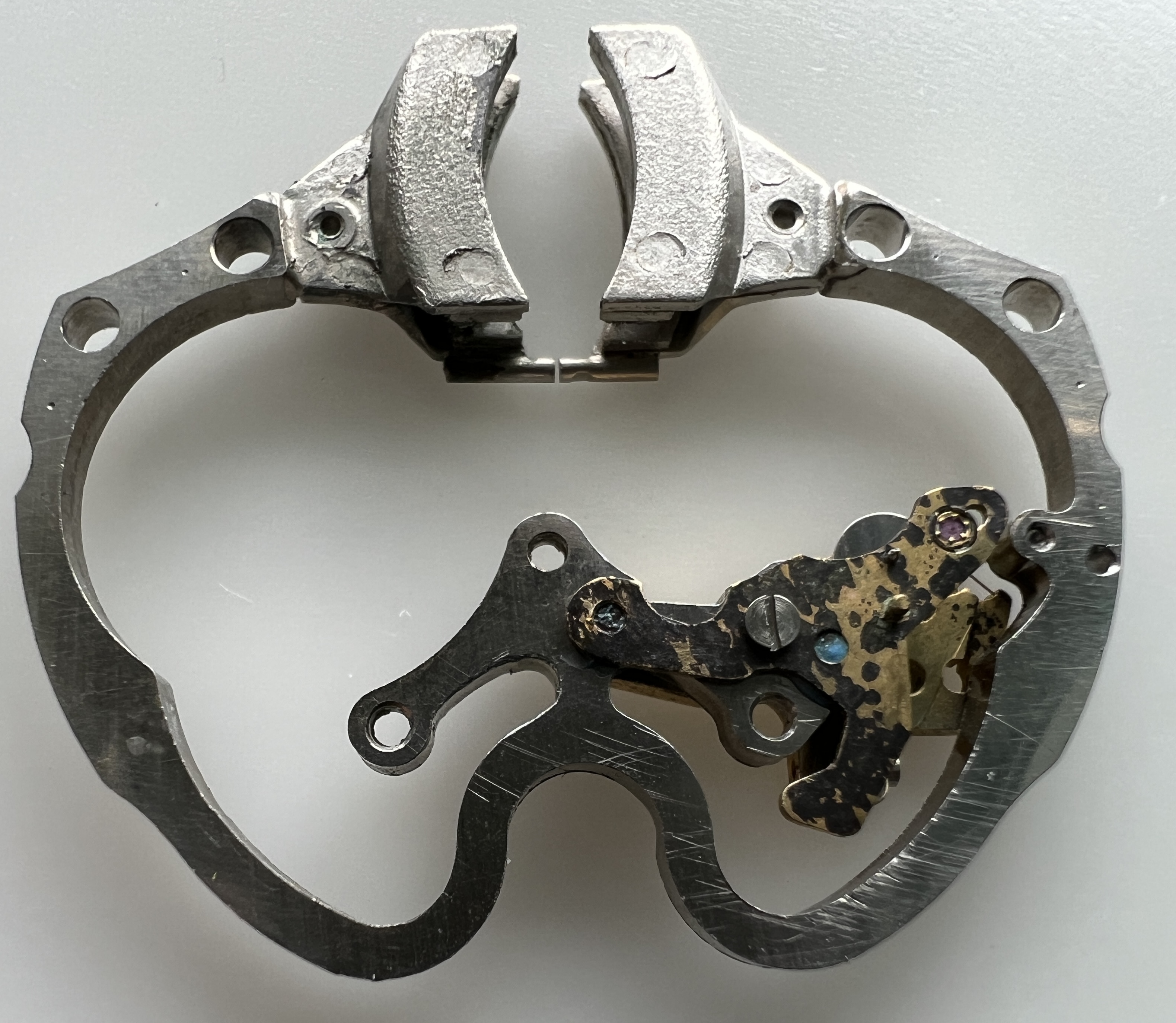 Additional info: The adjustment devices on the arms of the tuning forks are little metallic hooks, earlier prototypes have small excentric screws for adjusting the frequency.