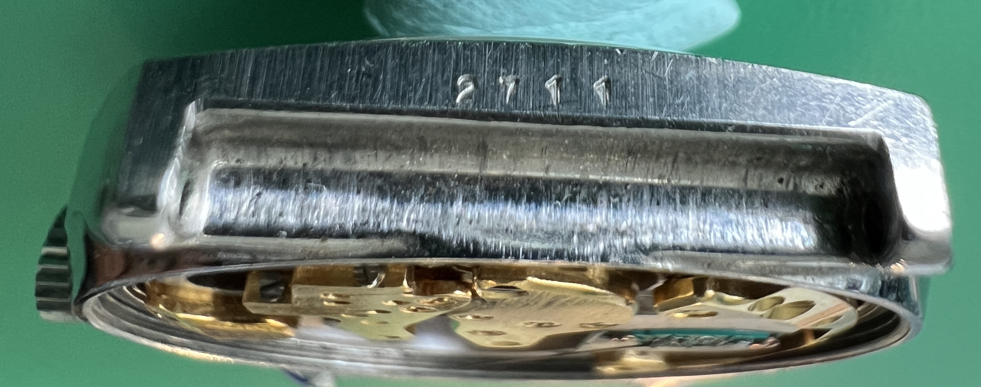 Case was made by ‘Taubert Fils’, who still used the mark ‘FB’ for François Borgel, who invented this type of watch case. The main case is unmarked, the ‘FB’ mark is stamped on the inside of the screw down case back.