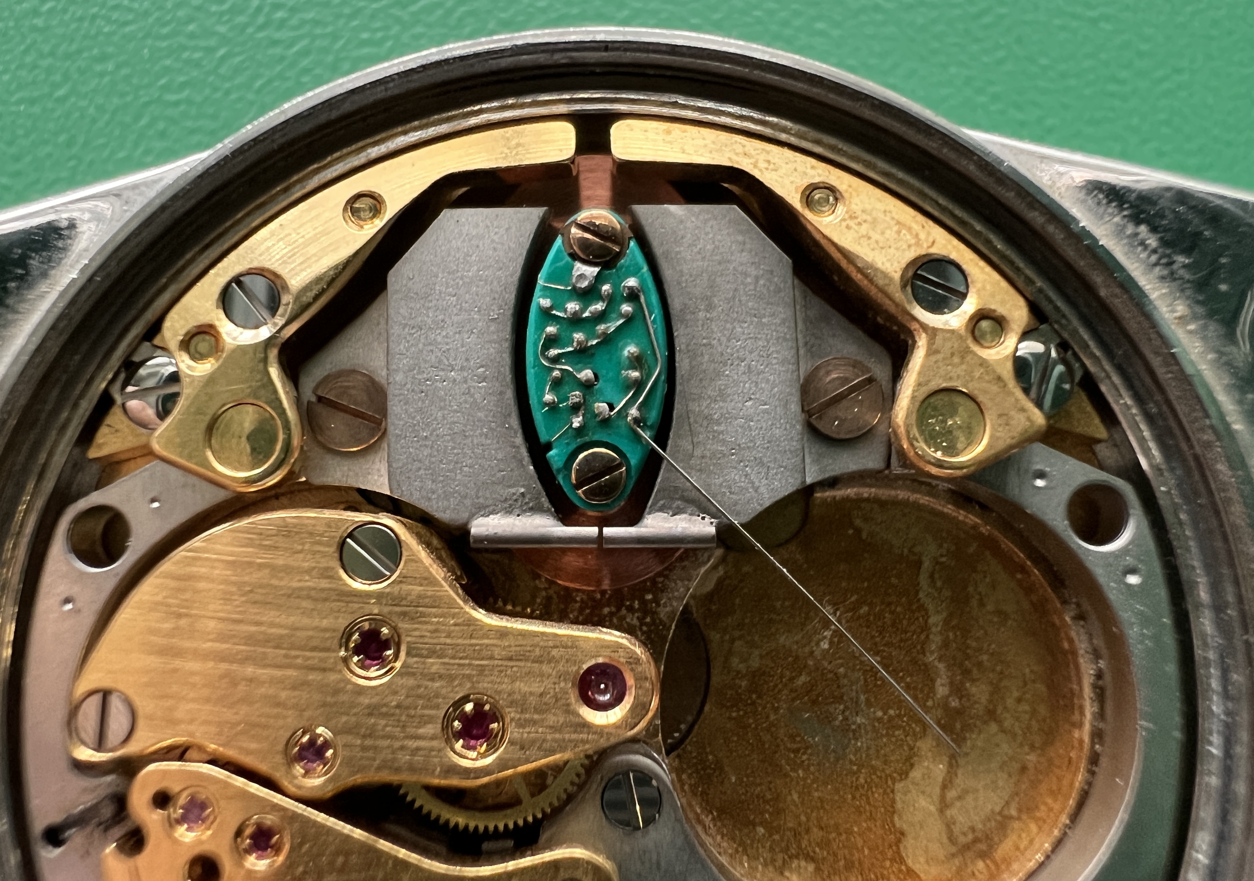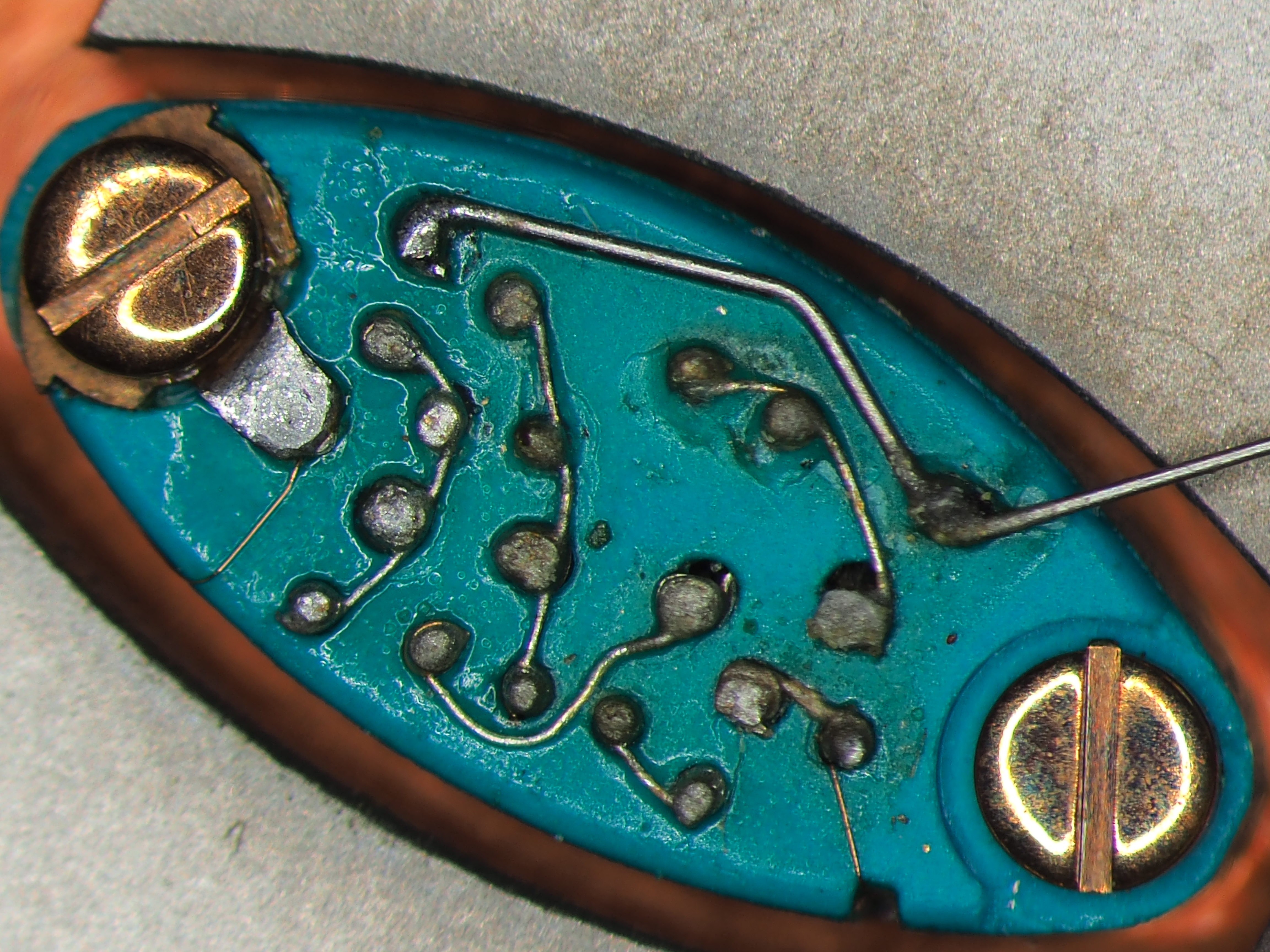 Additional info: The adjustment devices on the arms of the tuning forks are little metallic hooks, earlier prototypes have small excentric screws for adjusting the frequency.